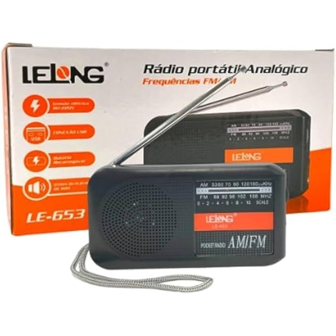 CAIXA DE SOM RADIO PORTATIL FM/AM LELONG LE-653