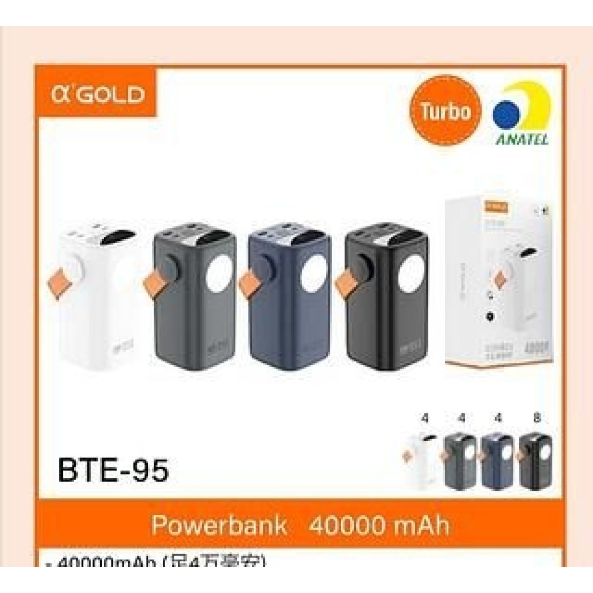 CARREGADOR POWER BANK TURBO 22.5W 40000MAH BTE-95 A'GOLD