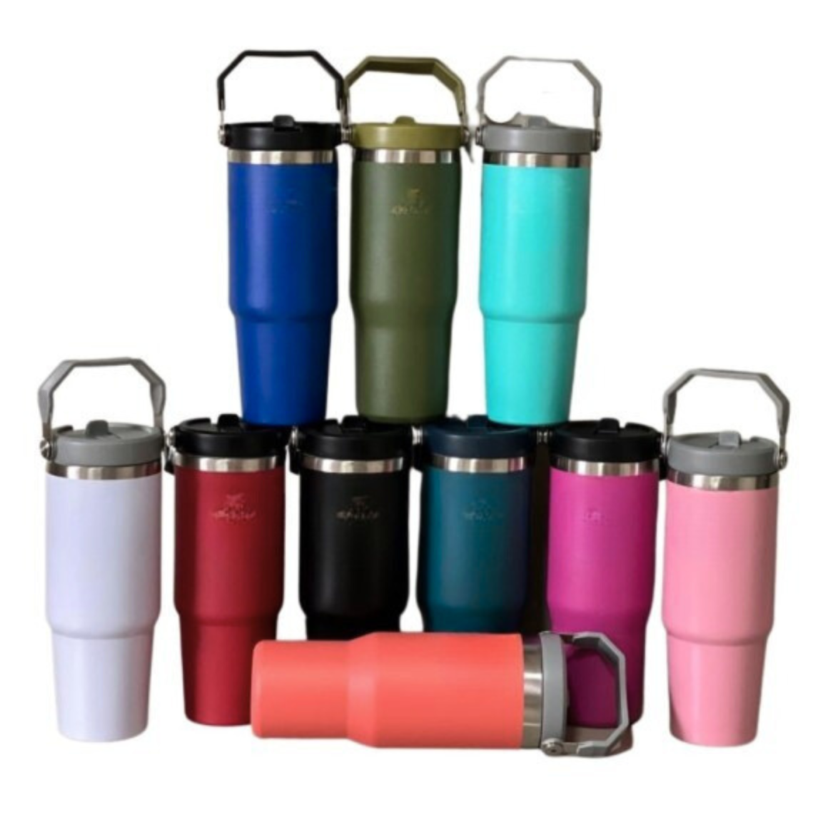 Garrafa Térmica 900ML Com Bico Com Alça Flip Tumbl Aço Inoxidável Academia Trabalho